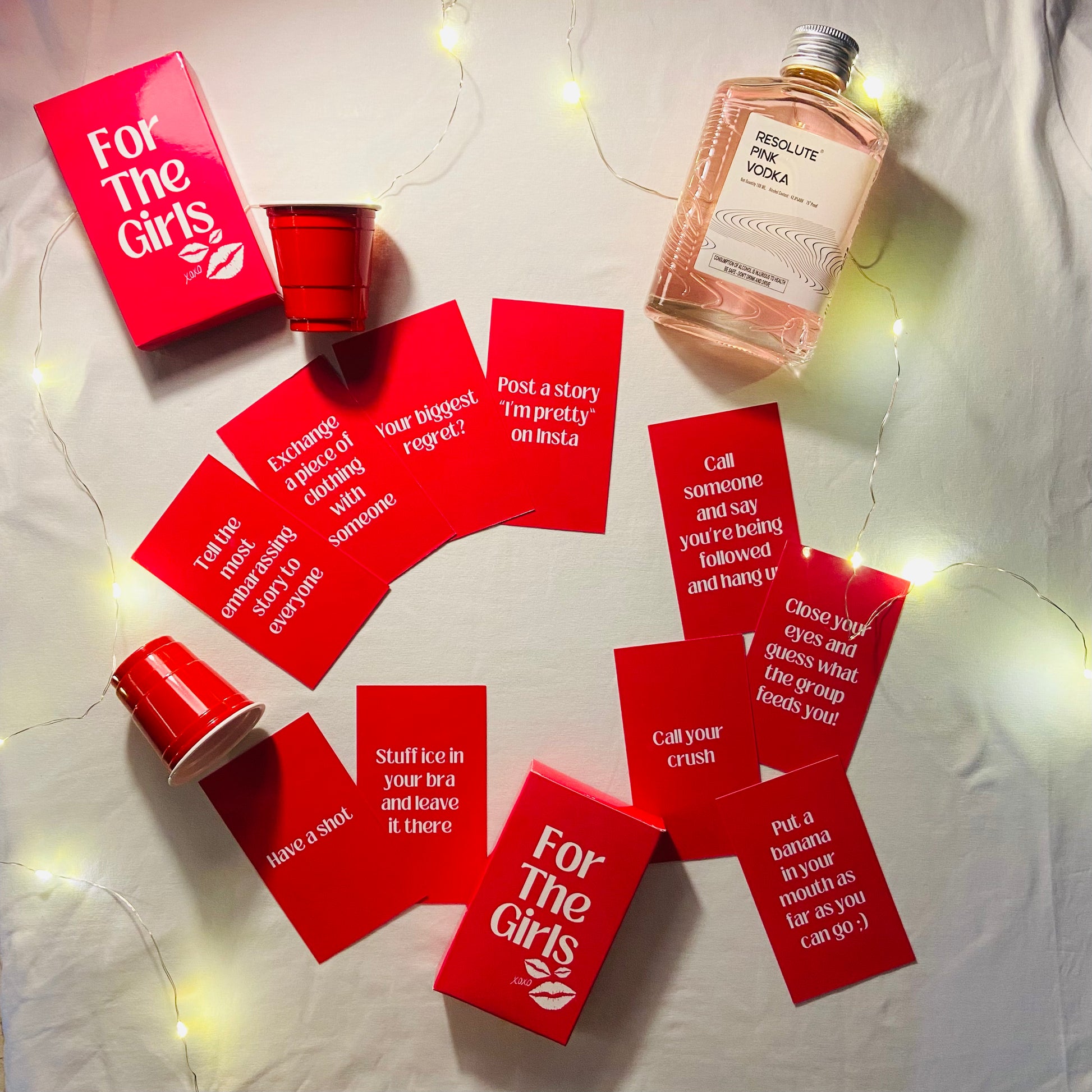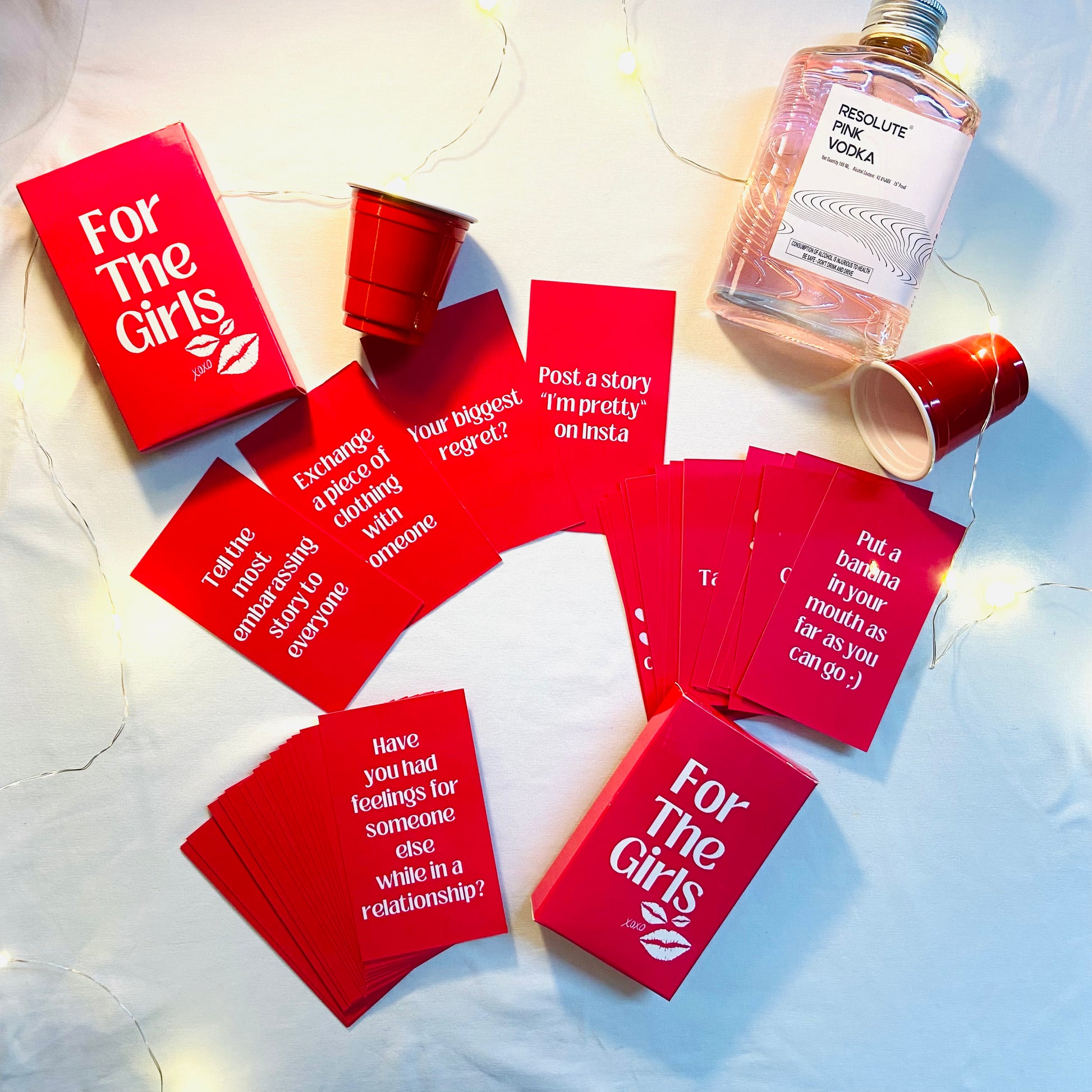 For the Girls Card Game: The ultimate party game for a night of laughter and unforgettable moments with your besties! Packed with hilarious challenges, revealing questions, and outrageous dares, this game is designed to bring out the fun-loving side of every player. From embarrassing confessions to daring antics, For the Girls is guaranteed to keep the party going and create memories that will last a lifetime. Whether it's a girls' night in or a bachelorette bash, get ready to bond, laugh, and celebrate with For the Girls Card Game!