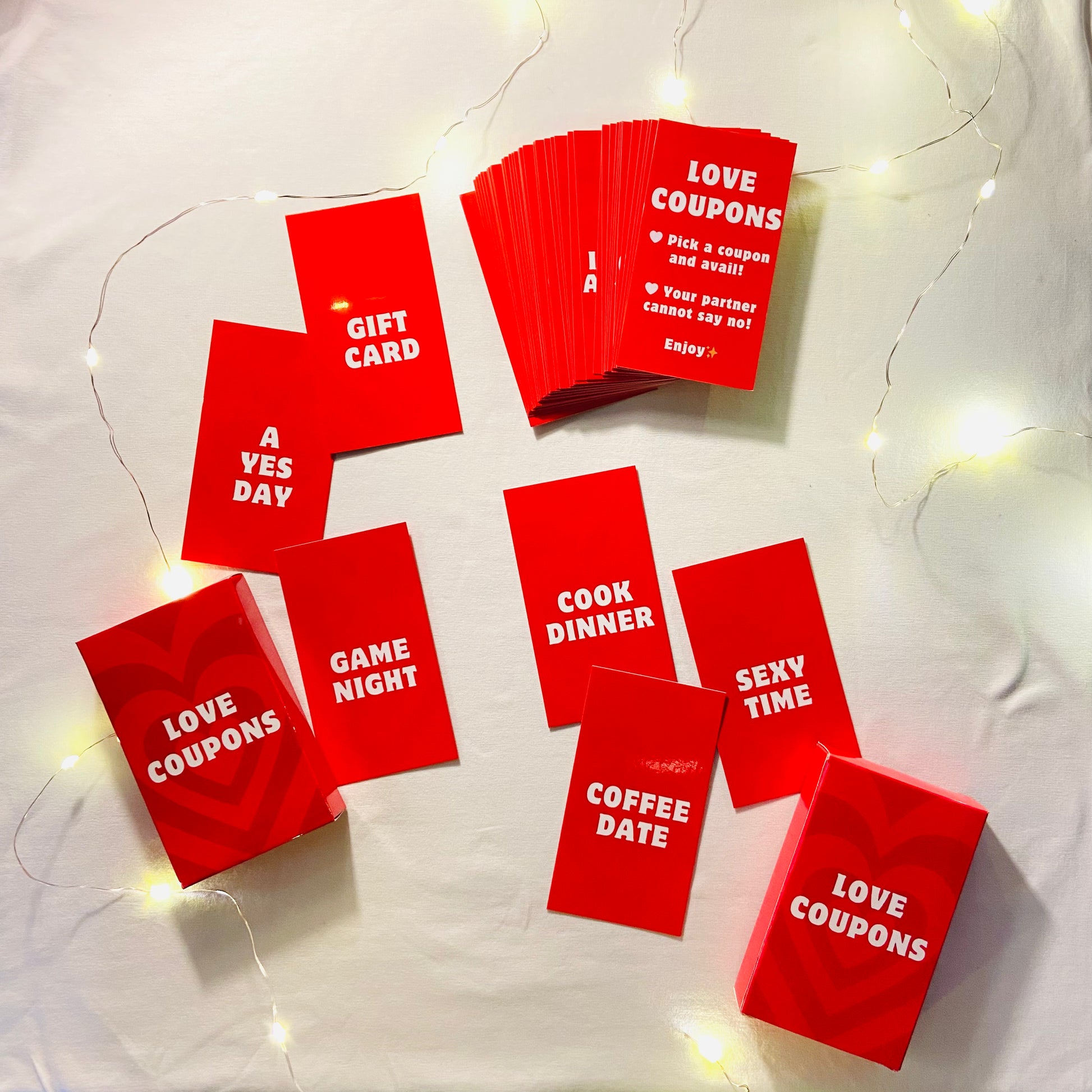 Introducing our Love Coupons: The perfect gift to ignite romance and strengthen bonds! Each coupon is a promise of affection, from romantic dinners to heartfelt massages, allowing you to express love in creative and personalized ways. Whether it's a special occasion or just because, these tokens of love are sure to delight and inspire memorable moments together.
